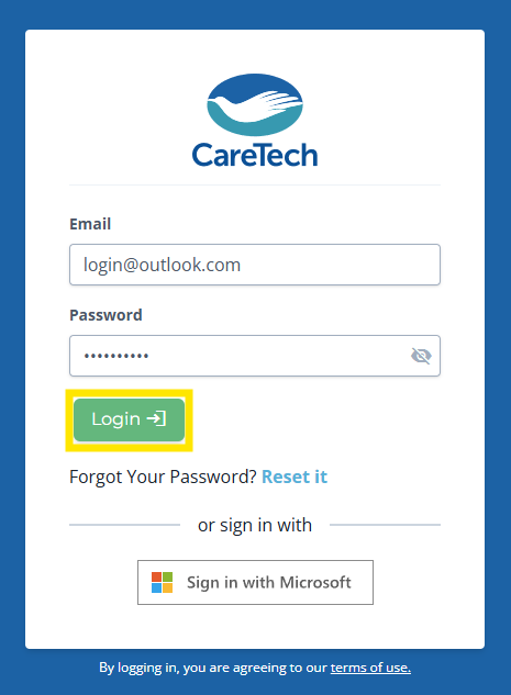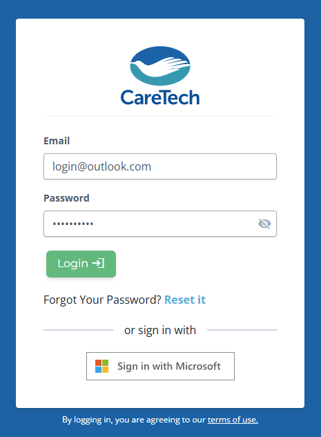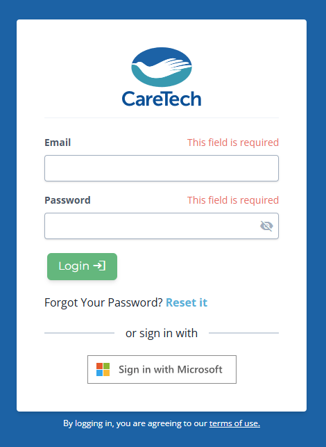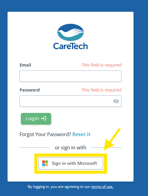 To begin, head over to "caretech.yourhippo.com" then click 'Sign in with Microsoft' as seen below: